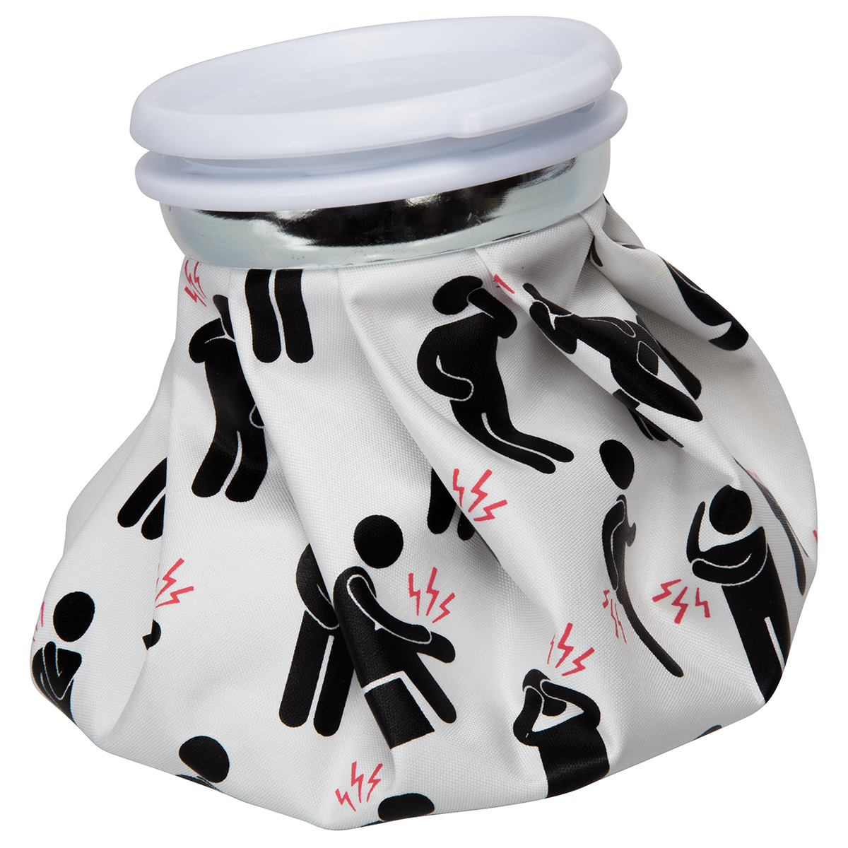 FUN PATTERNED ICE BAGS. FILL WITH ICE TO HELP ALLEVE HEADACHES, CRAMPS., HANGOVERS AND GENERAL ACHES AND PAINS. WATERPROOF LINER WILL NOT LEAK. FOR THOSE GENERAL ACHES AND PAINS